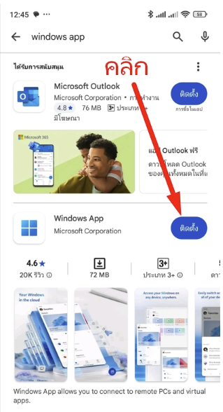 ค้นหา "Windows App" ใน Google Play Store หรือคลิกลิงก์ด้านบน