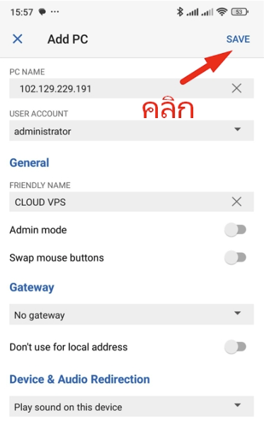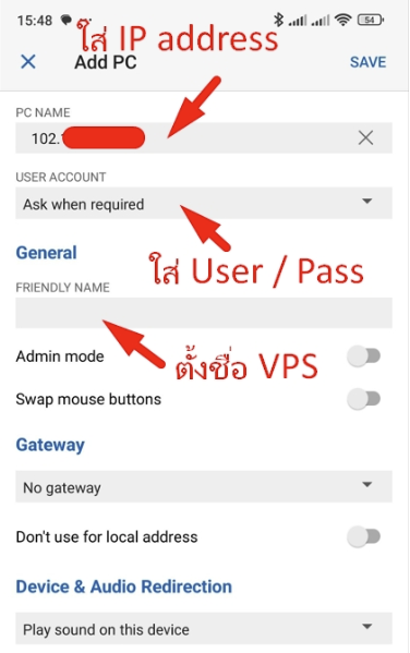 PC Name: IP Address ของ VPS (เช่น 103.x.x.x)
