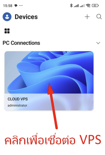 เชื่อมต่อสำเร็จ! หน้าจอ Windows ของ VPS จะแสดงขึ้นบนมือถือ คุณสามารถใช้งานได้ทันที