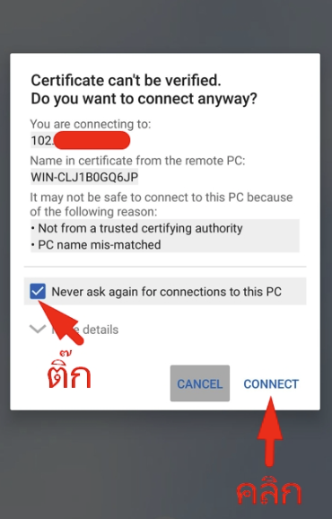 หากมีแจ้งเตือน Certificate กด Accept เพื่อดำเนินการต่อ