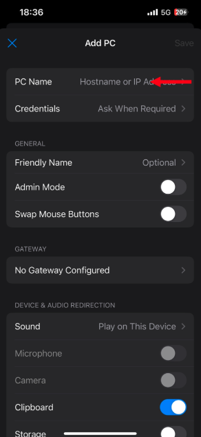 กด Save มุมบนขวา แล้วแตะที่ชื่อ PC ที่เพิ่งสร้าง